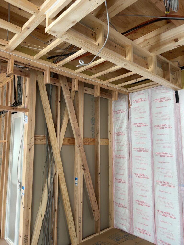 それぞれの断熱材に良さがありますが、モデルハウスでは、気密性と断熱性能のバランス、そして現場での安定した施工品質を重視して、吹付け断熱を採用しています。