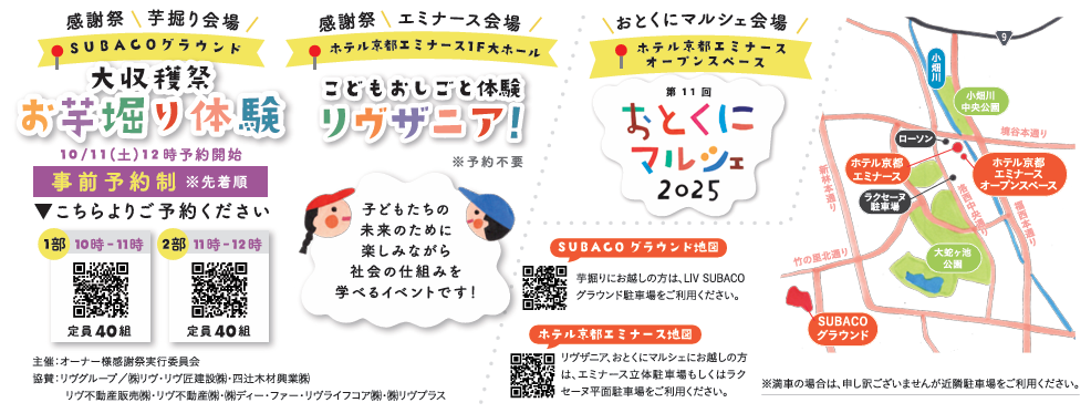 備考:オーナー様限定の芋堀り体験も、会場から車で約5分の畑で、同時開催します。