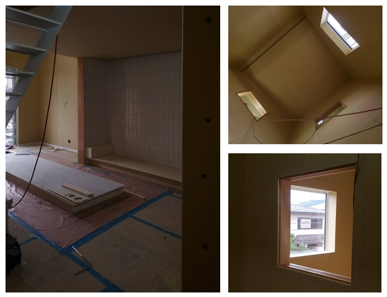 モデルハウスは大工工事が終わり、内装工事に入っています。