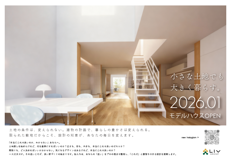 「小さな土地でも、大きく暮らす」モデルハウス 2026.01 OPEN予定