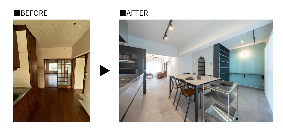 黒×グレー×ステンレスが映える、団地リノベーション