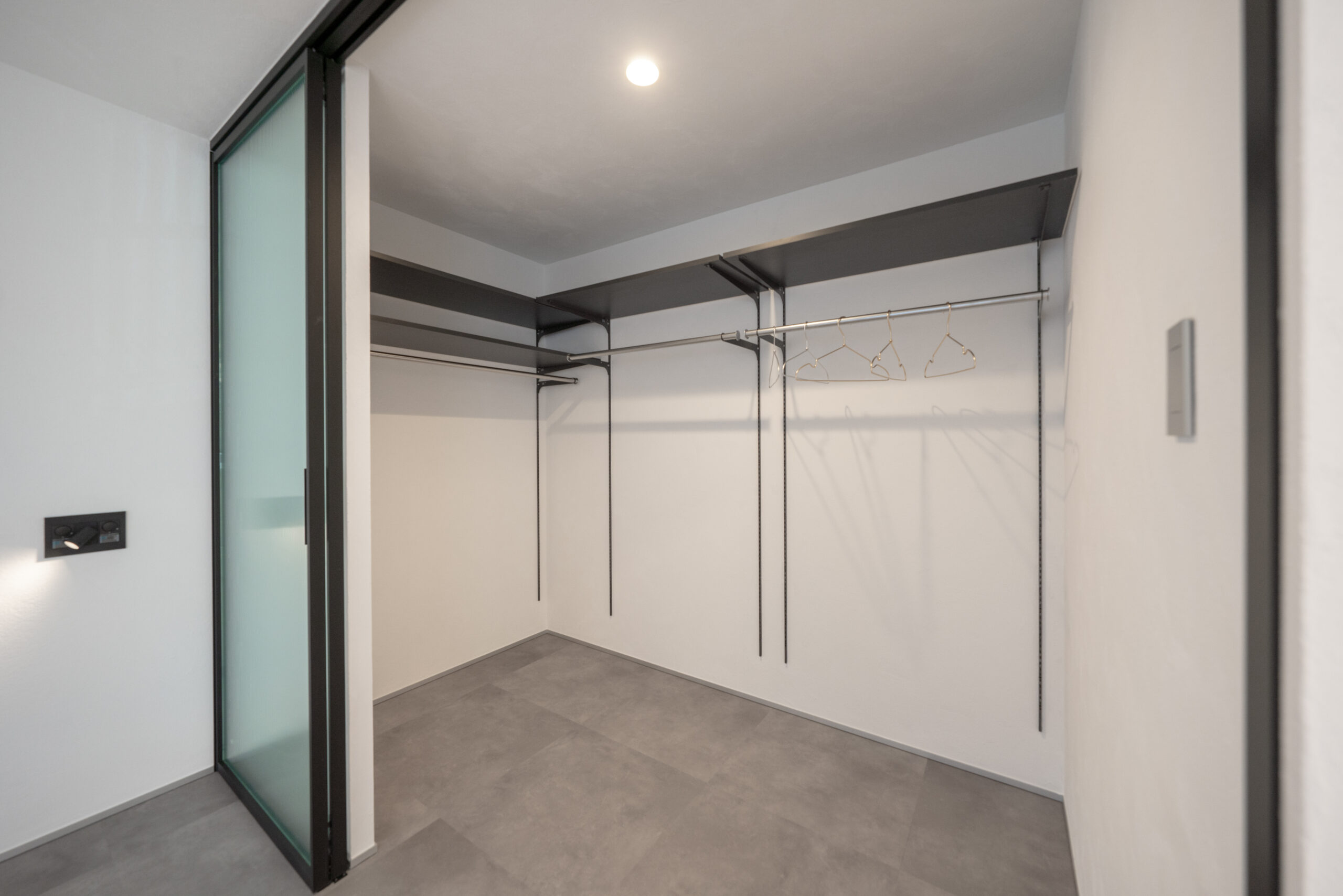 寝室の奥に設けたウォークインクローゼット。